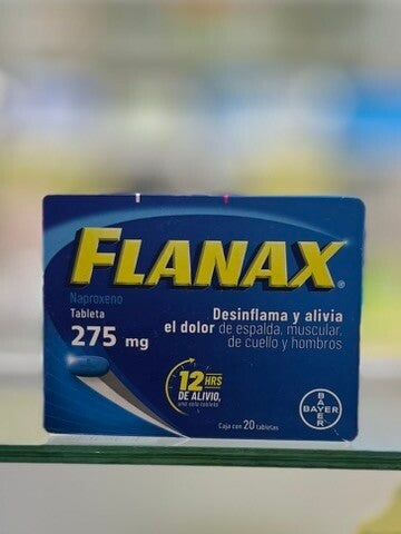 Flanax is an anti-inflammatory and analgesic medication that contains naproxen sodium and is used to relieve moderate pain, such as muscle, joint, menstrual, and throat pain. It can be purchased without a prescription and also exists in presentations such as a gel for local application and a nighttime formula that helps you fall asleep by relieving pain.