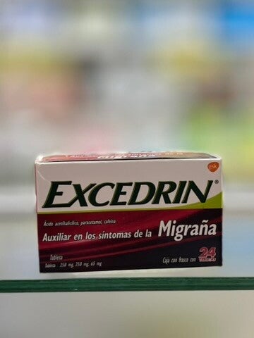 Excedrin Migraña es un medicamento de venta libre que alivia los síntomas de la migraña. Combina tres ingredientes activos: ácido acetilsalicílico (aspirina), paracetamol y cafeína, que actúan juntos para bloquear las señales de dolor, aumentar el alivio y mejorar la efectividad general. Este producto está formulado para un alivio rápido de los dolores de cabeza moderados a severos, incluyendo el dolor y los efectos secundarios asociados con la migraña.