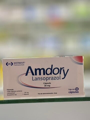 Amdory sirve para reducir la producción de ácido en el estómago y tratar afecciones relacionadas, como la enfermedad por reflujo gastroesofágico (ERGE), úlceras de estómago y duodeno, y el síndrome de Zollinger-Ellison. Su principio activo es el lansoprazol, un tipo de fármaco que pertenece a la clase de los inhibidores de la bomba de protones.